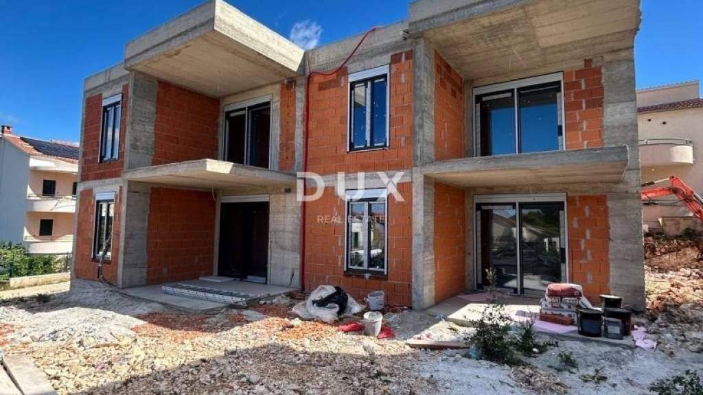 SIBENIK, BRODARICA Attraktive Wohnung mit Garten in einem Neubau, 250 m vom Meer entfernt, wunderschöner Blick auf das Meer und die Insel Krapanj
