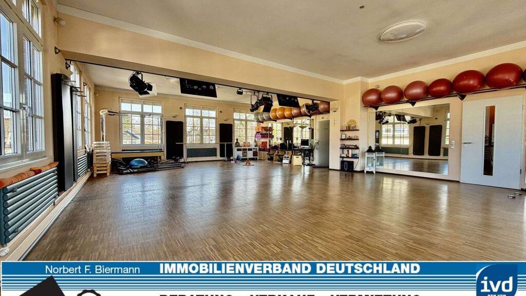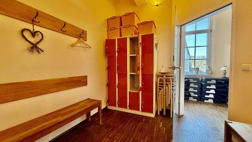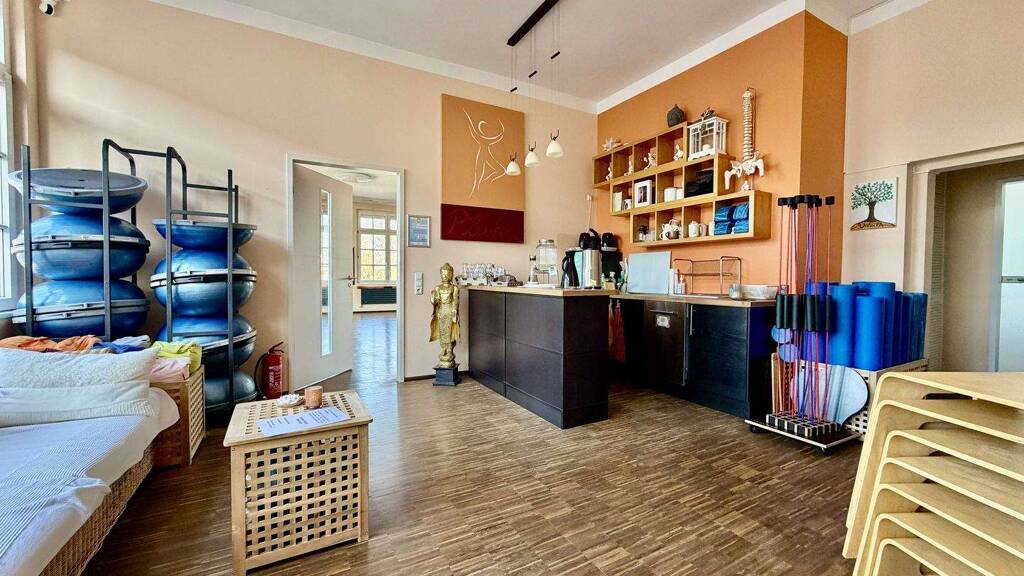 Zur Ausstattung gehören ein Eingangsbereich, der große Trainingsraum, Damen- und Herrenumkleiden mit Duschen sowie ein weiterer Behandlungsraum.