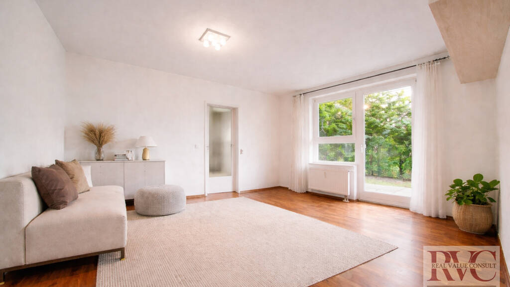 Herzstück der Wohnung ist der lichtdurchflutete Wohnbereich: Großzügige Fensterflächen schaffen eine helle, freundliche Atmosphäre und öffnen den Raum zur weitläufigen Terrasse und in den Garten. Von hier aus gelangen Sie direkt in die separate Küche, die mit einer modernen Einbauküche samt sämtlichen Geräten ausgestattet ist. Dank ihrer Größe bietet sie zudem ausreichend Platz für eine gemütliche Essgelegenheit.