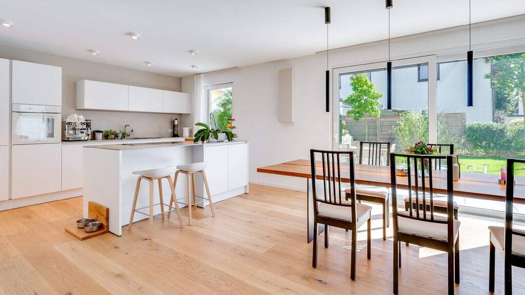 - familienfreundliche Wohnlage - vorteilhafte Raumaufteilung - großzügige Wohnfläche - Einbauküche mit Markengeräten - kontrollierte Wohnraumbelüftung - direkter Zugang zum eigenen Hobbykeller - zwei Badezimmer mit Dusche und Badewanne - Smart-Home Steuerung - Parkettböden Eiche - Fußbodenheizung - elektrische Rollläden - Wärmepumpe - Garten mit ca. 250 Quadratmetern - Südterrasse - Einzelgarage und Außenstellplatz
