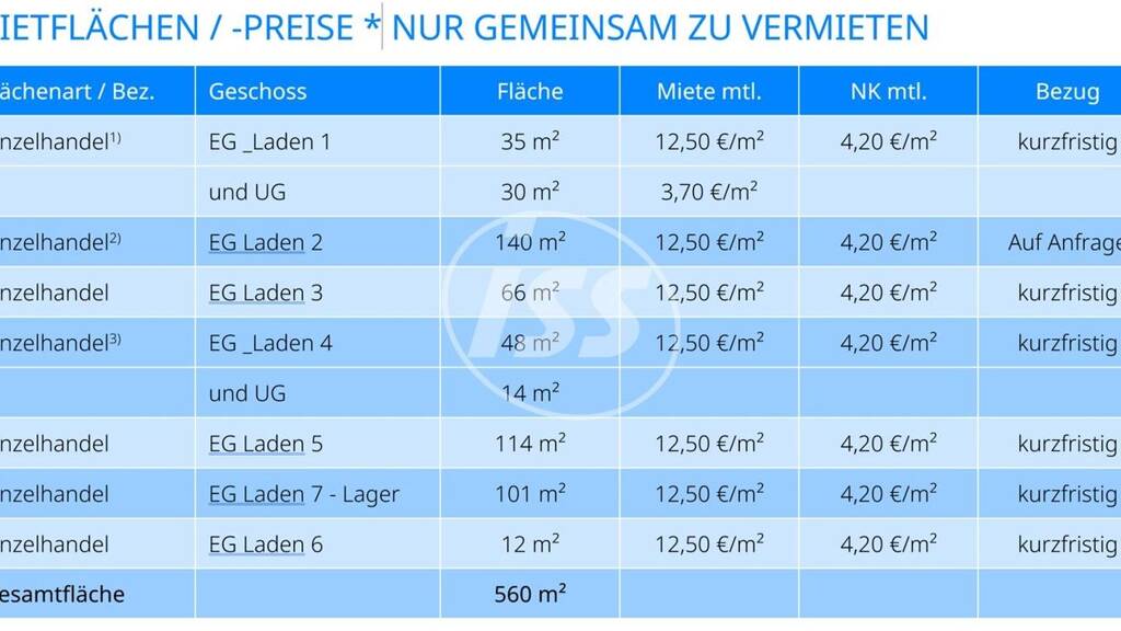 - Stellplatz nach Vereinbarung (25,00 €/Stück monatlich) - weitere Ladenflächen im EKZ anmietbar