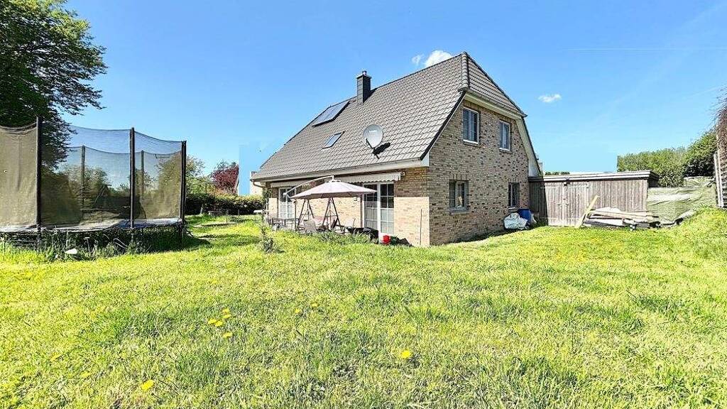 Inmitten der sanften Hügellandschaft Schleswig-Holsteins liegt das idyllische Dorf Krummwisch - ein Ort, der Ruhe ausstrahlt und gleichzeitig Raum für neues Leben bietet. Das Haus befindet sich in einer kleinen, familienfreundlichen Wohnstraße, eingebettet in eine grüne Umgebung mit weitem Blick über Felder und Wiesen. Hier können Kinder noch unbeschwert draußen spielen, Nachbarn kennen sich beim Namen, und das Leben verläuft in einem angenehmen, entschleunigten Rhythmus.