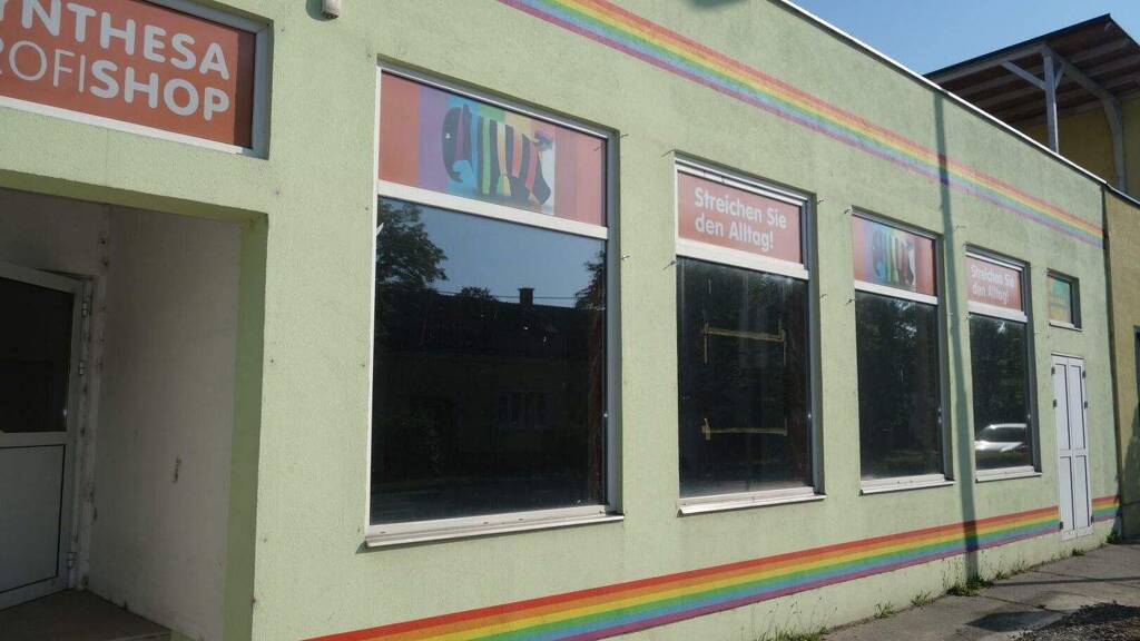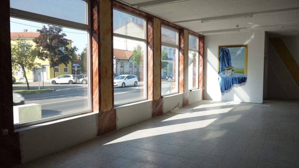 Die Geschäftsfläche ist in mehrere Räumlichkeiten unterteilt, weiters besitzt dieses Geschäft 2 Eingänge, einen Eingang direkt über die Gänsendorfer Straße und einen weiteren über die Bockfließerstraße.