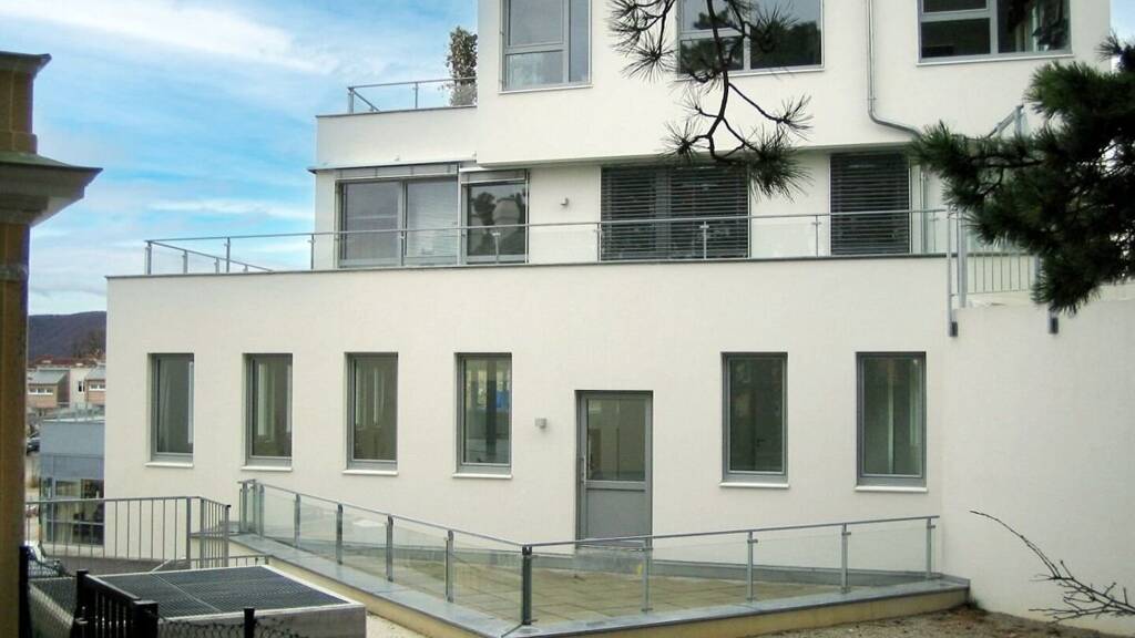 Modernes BĂĽro mit groĂźzĂĽgiger Terrasse