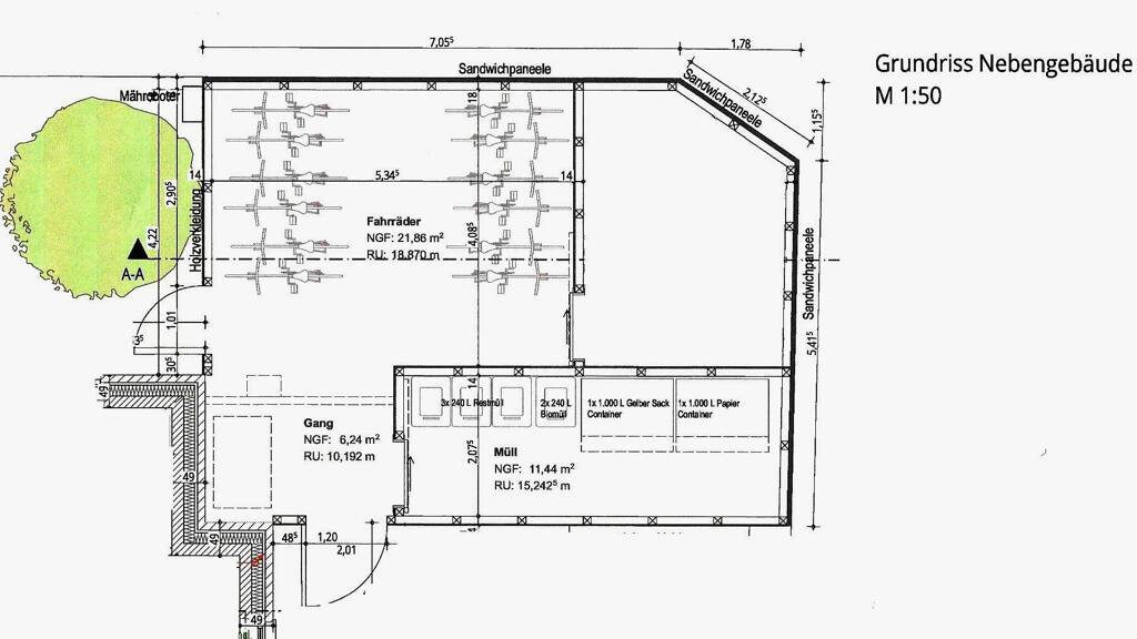 Dieses Gebäude mit 6 Wohneinheiten erfüllt den sehr hohen KfW-Effizienzhaus-40 plus Standard bestehend aus der Kombination einer verbesserten Gebäudehülle, hocheffizienter Haustechnik, zentraler Lüftung mit Regelung und Wärmerückgewinnungssystem sowie dem Einsatz von 3-fach-verglasten Fenstern.