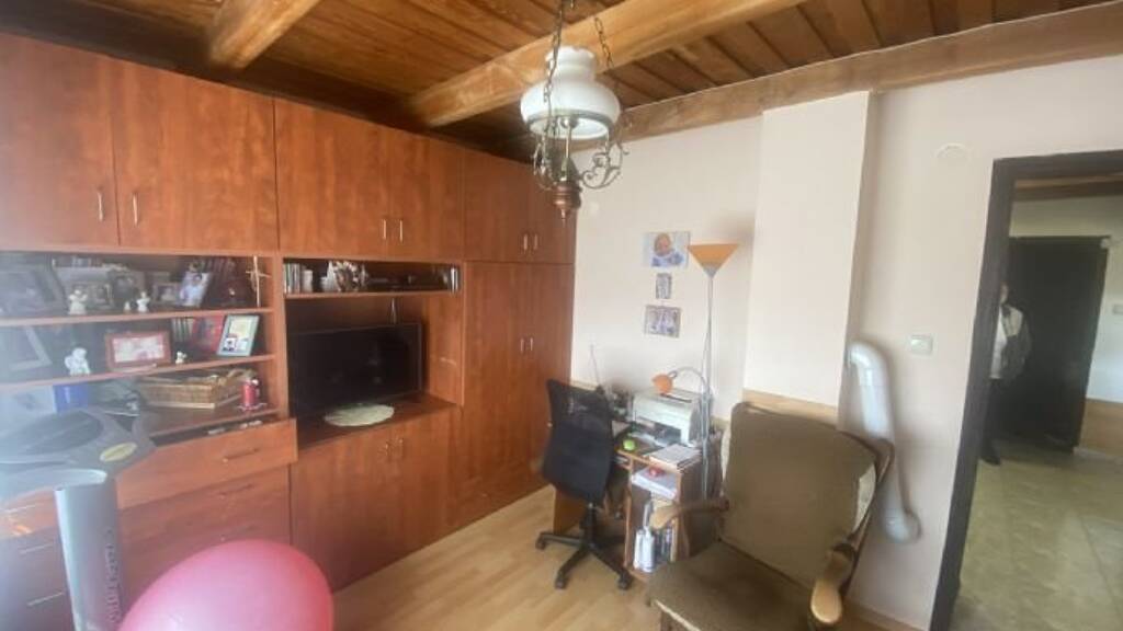 Das Anwesen hat zwei Etagen und das gesamte Haus ist unterkellert. Am Eingang befindet sich eine lange überdachte Terrasse. Wenn Sie das Haus betreten, befinden sich in der mittleren Etage der stets helle Wohn-Essbereich, ein Wohnzimmer, eine Küche, ein Badezimmer mit WC, ein Garderobenzimmer und eine größere Speisekammer. Auf der Westseite des Hauses befindet sich die Terrasse mit ewigem Panorama. Im Dachgeschoss befinden sich 2 Schlafzimmer und ein Badezimmer mit WC. In der ersten Hälfte des Hofes wurden 2 überdachte Parkplätze gebaut und in der Fortsetzung große Lagerräume und ein Kesselhaus.