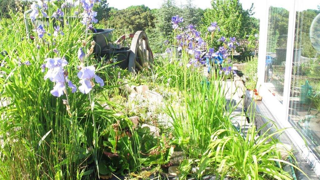 Der kleine Wintergarten auf dem Dach mit Sitzgelegenheit für 4 Personen ist über die Wendeltreppe zu erreichen. Öffnet man die Schiebetür ist man nur einen Schritt von der großen Dachterrasse mit Sitzbereich/Essbereich/Barbecue-Smoker, Ein Fischteich mit kleinem Fluss, Blumengarten, sowie Kräuter-garten mit Äpfel, Pfirsich, Kirschbäumen, sowie diversen Beerensträuchern rundet das Bild ab.