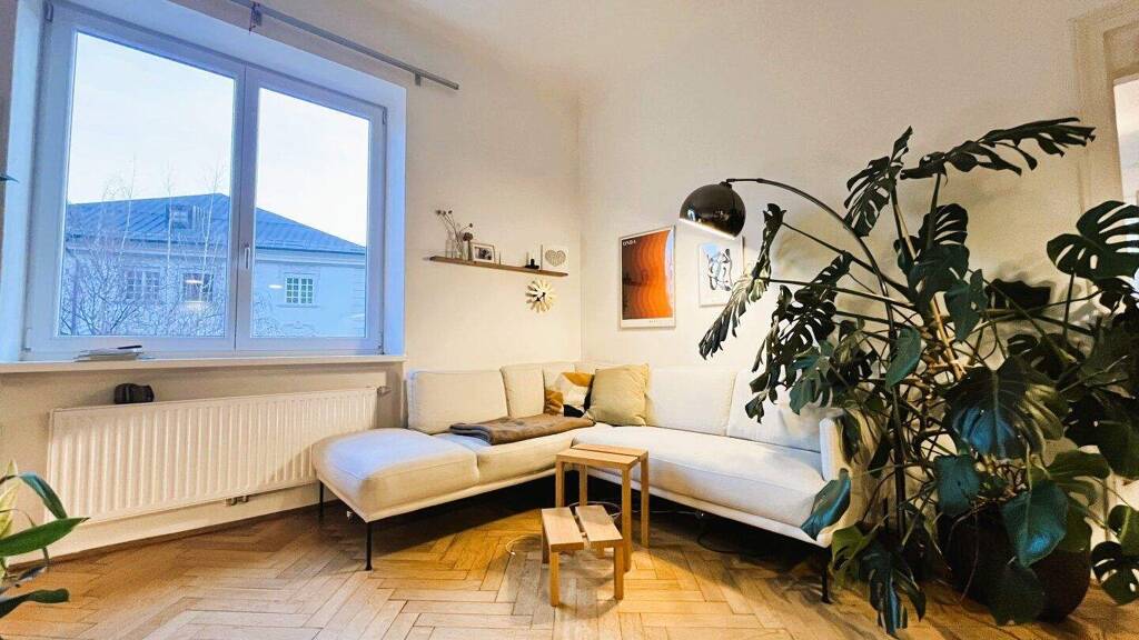 Die Böden bestehen aus hochwertigem Fisch-Grätparkett aus Echtholz und passen hervorragend zu den stilvollen Innentüren aus Massiv-Holz in Kassetten-Optik, welche der hellen 2-Zimmerwohnung diesen exklusiven Charme verleihen. Zudem gibt es noch ein gepflegtes Badezimmer mit Dusche, WC und Waschmaschinen-Anschluss sowie eine praktische Küche mit Geschirrspüler, Kühlschrank, Backofen und Herd. Neben dem Vorzimmer und den großzügig geschnittenen Zimmern gibt es noch ein ca. 14m² großes Kellerabteil als zusätzlichen Stauraum.