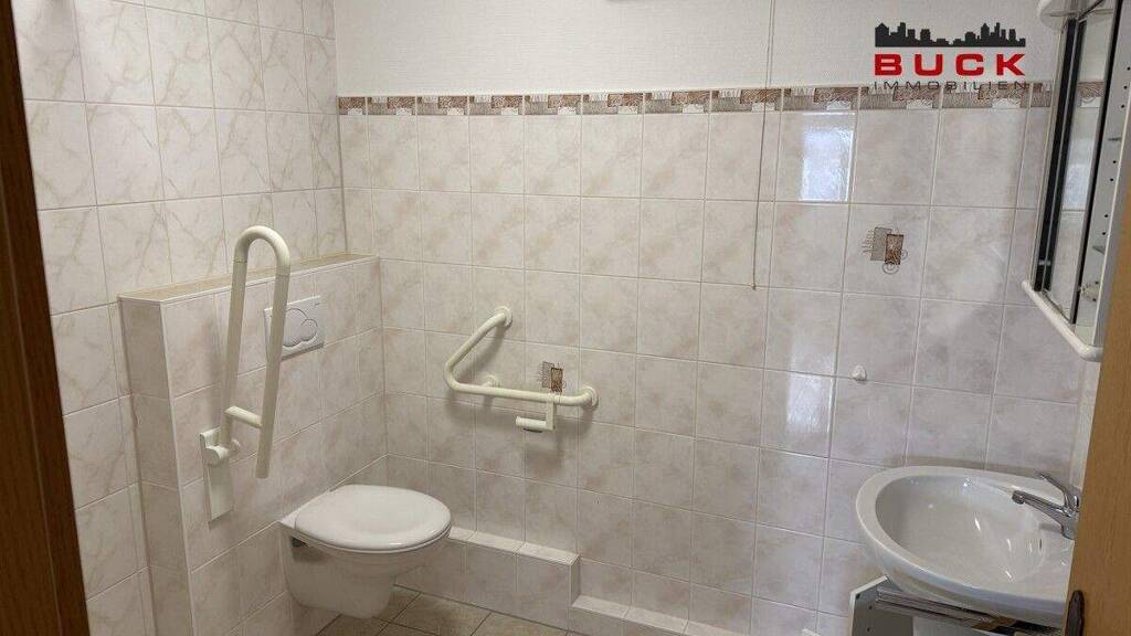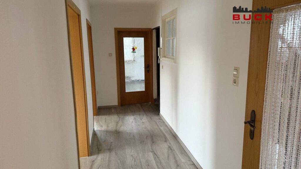 Die Wohnung verfügt über insgesamt drei geräumige Zimmer, darunter zwei gemütliche Schlafzimmer, ein Badezimmer mit begehbarer Dusche, ein WC sowie eine große Küche (ohne EBK) mit angrenzender Speisekammer und einem zusätzlichen Gäste-WC. Bei zusätzlichem Platzbedarf könnte weiterer Wohnraum angemietet werden.