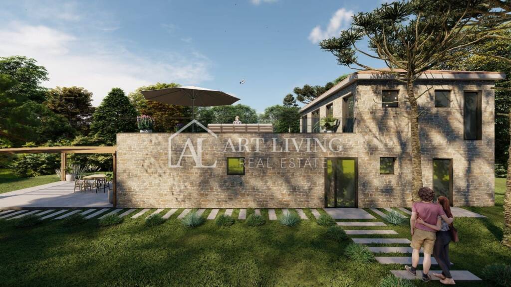 Das Grundstück mit einer Gesamtfläche von 900 m2 liegt an einem ruhigen und schönen Ort, umgeben von Olivenhainen und einem wunderschönen Blick auf die beruhigende istrische Landschaft.