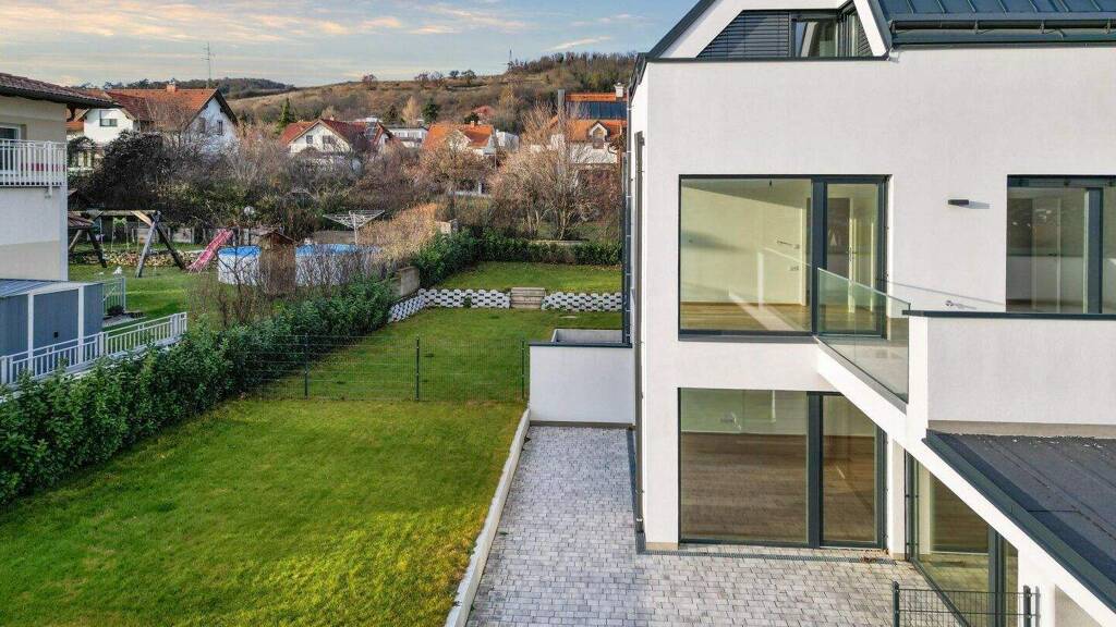 Weitere Annehmlichkeiten: überdachter PKW-Stellplatz mit Vorbereitung für E-Ladestation; Vorbereitung Klimaanlage in jedem Zimmer; Fußbodenheizung mittels Luft-Wärmepumpe; Vorbereitung für Photovoltaikanlage vorhanden; 3-fach Isolierglasfenster (Innen Kunststoff, außen Aluminium); elektrische Beschattung an allen Fenstern (Rollläden oder Raffstores); und vieles mehr .. | _HWB zw. 28,6 kWh/m²a_