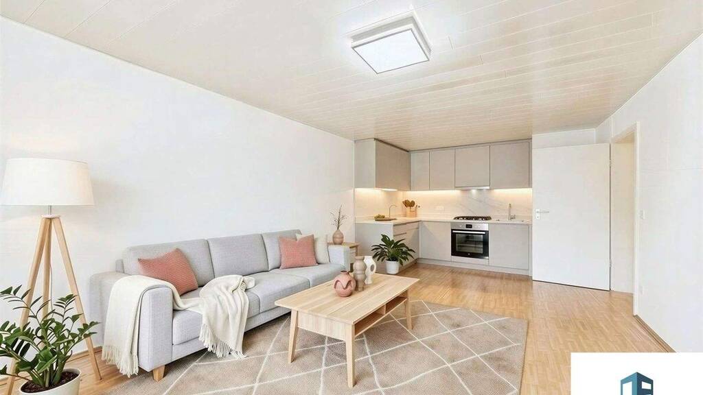 Der großzügig geschnittene Wohn- und Essbereich bietet ausreichend Platz für eine gemütliche Sitzecke und einen Esstisch. Große Fensterflächen lassen viel Tageslicht herein und öffnen den Blick auf den Balkon, der an warmen Tagen zum Aufenthalt im Freien einlädt.