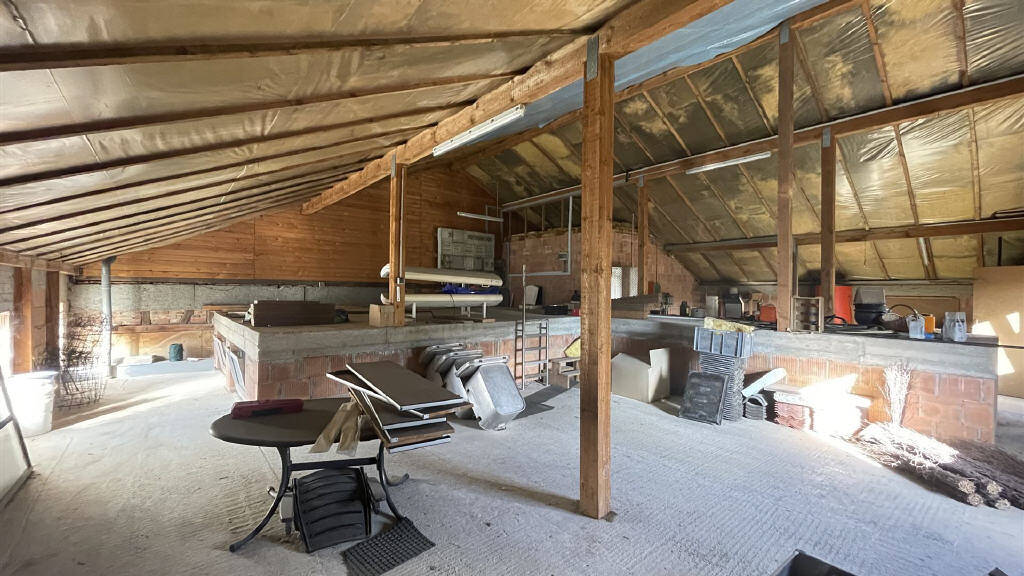 Am Ende des Flur-/Dielenbereichs im Erdgeschoss gelangen Sie in den Trockenraum und anschließend in den großzügigen Verarbeitungs- und Wurstraum. Von hier haben Sie zum einen Zugang in das Obergeschoss, zum anderen erreichen Sie von hier einen weiteren Kühlraum mit angrenzendem Tiefkühlraum sowie das ehemalige Schlachthaus und einen zusätzlichen Lagerraum. Durch das Schlachthaus gelangen Sie weiter in die Tenne, einen Abstellraum und in die Garage. Auch einen Zugang in den Gartenbereich haben Sie von hier aus. Die Höhe des Schlachthauses sowie des Kühlraums beträgt teilweise bis zu vier Meter.