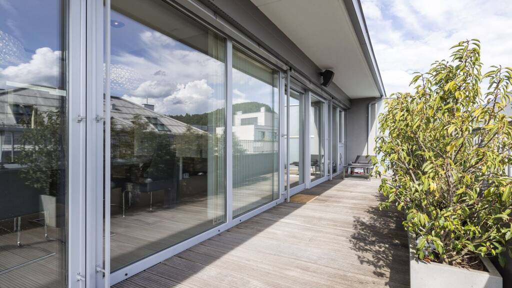 Diese außergewöhnliche Penthouse-Maisonette-Wohnung befindet sich im obersten Geschoss eines modernen Wohn- und Geschäftshauses in einer ruhigen Seitenstraße - nur wenige Schritte vom Salzachufer und dem Mirabellgarten entfernt. Die Lage verbindet städtische Ruhe mit urbanem Komfort und einer der schönsten Aussichten Salzburgs.