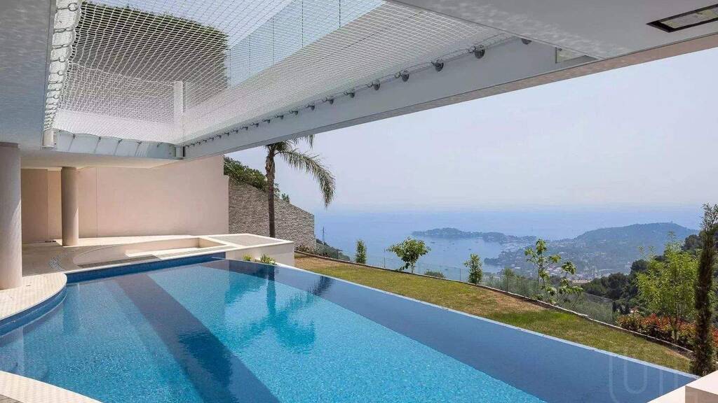 In einer erstklassigen Lage in Villefranche-sur-Mer gelegen, bietet diese zeitgenössische Villa eine seltene Kombination aus modernem Design, luxuriösen Annehmlichkeiten und atemberaubenden Panoramablicken über Cap Ferrat und die umliegenden Berge. Mit einer Fläche von etwa 350 m² ist das Grundstück so gestaltet, dass es Licht und Raum maximiert, mit einem großen, offenen Wohn- und Essbereich, der direkt auf eine Terrasse hinausgeht, sowie einem beheizten Infinity-Pool und bietet so die perfekte Umgebung, um den mediterranen Lebensstil zu genießen.