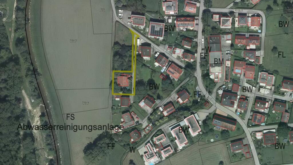 Die Zufahrt erfolgt über eine Privatstraße- dies bedingt somit Schneeräumung und Erhaltungspflicht. Die Straße (GSt. Nr. 718/7) steht ebenfalls im Alleineigentum dieser Liegenschaft, wurde bei der Flächenangabe jedoch NICHT berücksichtigt und ist mit div. Geh- und Fahrrechten belastet. Die Erhaltungskosten etc. werden auf die Nutzer aufgeteilt (bisherige Handhabe, lt. Auskunft Verkäufer)
