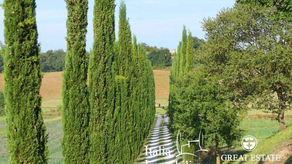 Diese 650 m² große Villa liegt auf dem Land in Castiglione del Lago, Umbrien, an der Grenze zur Toskana und ist von Hügeln und unberührter Natur umgeben. Im Inneren spürt man den Charme einer historischen Villa, mit 6 schönen Schlafzimmern, 6 Badezimmern, einem 130 m² großen Nebengebäude, das zu einer angenehmen Unterkunft für Ihre Gäste werden könnte, und einem 12 ha großen Grundstück mit einem wunderschönen Park, der mit Statuen, Zierpflanzen und einem eleganten Swimmingpool ausgestattet ist. Die Immobilie ist auf drei Ebenen verteilt, wobei zwei Wohnungen errichtet wurden. Im Erdgeschoss befindet sich die erste Wohnung, bestehend aus einem geräumigen und hellen Eingangsbereich, einem Wohnzimmer mit direktem Zugang zur Außenveranda, einer gut ausgestatteten Küche, 2 Schlafzimmern und 2 Bädern. Eine Innentreppe führt in den ersten Stock, wo sich die zweite Wohnung befindet, bestehend aus einer Küche, einem Wohnzimmer, einem Esszimmer, 4 Schlafzimmern und 2 Bädern. Das Dachgeschoss, das über eine Innentreppe erreichbar ist, wird als Abstellraum genutzt. Das Anwesen umfasst auch ein Nebengebäude von ca. 130 m², das derzeit als Lagerraum genutzt wird und in ein weiteres Wohngebäude umgewandelt werden kann, sowie ein landwirtschaftliches Nebengebäude von ca. 300 m². Das Grundstück, das das Haus umgibt, hat eine Fläche von 12 ha und wird als Ackerland, Wald und privater Park genutzt, in dem es einen schönen Swimmingpool gibt.