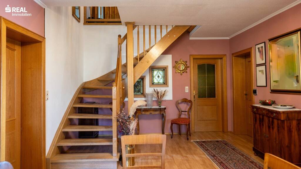 Das Obergeschoss ist über ein Stiegenhaus im Eingangsbereich erreichbar.