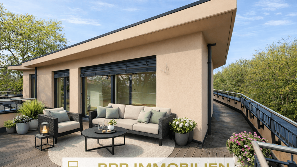 Das Highlight des Hauses: das 2-Zimmer-Penthouse befindet sich im 2. Obergeschoss eines modernen Neubaus, der im Januar 2026 bezugsfertig sein wird. In allen Räumen sorgt eine Fußbodenheizung für angenehme Wärme, während hochwertiger Parkettboden ein elegantes Wohnambiente schafft. Der Essbereich erhält vor dem Einzug noch eine hochwertige Einbauküche. Der offen geschnittene Wohnbereich wirkt dank der großzügigen Fenster freundlich und lichtdurchflutet. Aus jedem Raum gelangen Sie direkt auf die umlaufende Dachterrasse, die die Wohnung vollständig umgibt. Das Badezimmer überzeugt mit einer ebenerdigen Dusche. Alle Fenster sind mit elektrischen Rollläden ausgestattet. Der Lift bringt Sie bequem in alle Stockwerke wie auch das Untergeschoss, indem sich Ihr eigenes Kellerabteil und ein Tiefgaragenstellplatz befinden.