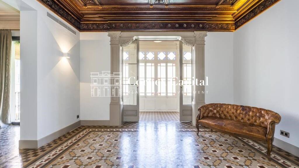 Exklusives luxuriöses Apartment wunderbar renoviert (neu gestrichen) mit 222 m2 gebautem Wohnraum. Befindet sich in einer majestätischen Villa aus 1905 in der Calle Consell de Cent, einer kürzlich renovierten Straße, die zu einer halb Fußgängerzone geworden ist. Die Wohnung besticht durch das Gleichgewicht zwischen der Moderne mit Stuckdecken, Noya-Boden, orig-Glasfenstern der Epoche. Mit zeitgenössischen Annehmlichkeiten wie schalldichte Fenster, Klimaanlage über Kanäle, ursprünglicher Kamin funktionsfähig Bioethanol, Internet usw. Bestehend aus zwei Salons, Galerie, Terrasse, Küche separat durch eine metallene Schiebetür vom Esszimmer, Waschküche, und drei Schlafzimmern, das Hauptschlafzimmer mit großem Kleiderschrank, en-suite Bad und zwei zusätzlichen Bädern plus Abstellraum. Aufzug und Portierdienst. Parkplatz zur Vermietung optional in einem angrenzenden Gebäude in 25 m Entfernung. Die Immobilie liegt im Herzen des modernistischen Eixample Cuadrat d'Or, dem rechten Eixample direkt neben der Passeig de Gracia, eingebettet in einem Galerieviertel, neben dem besten Handel Barcelonas, Restaurants und kulturellem Leben der Stadt. Verpassen Sie nicht die Gelegenheit, diese wunderbare Wohnung zu besichtigen!