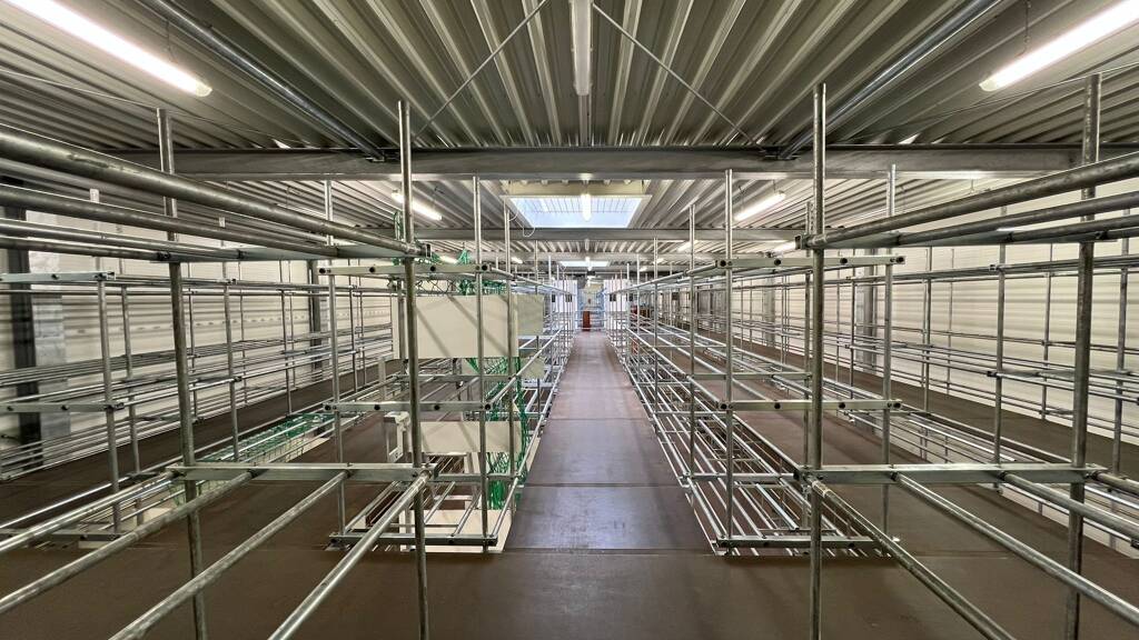 Regalsystem: Vollständig in allen Etagen installiert Raum für Verwalter: Inklusive Wasseranschluss Reinigungsecke: Bereits eingerichtet Heizung/Belüftung: elektrische Heizung im Verwaltungsraum Sicherheitsmaßnahmen: Vergitterte Fenster, einschließlich Dachfenster Automatisches Garagentor: Ideal für LKWs