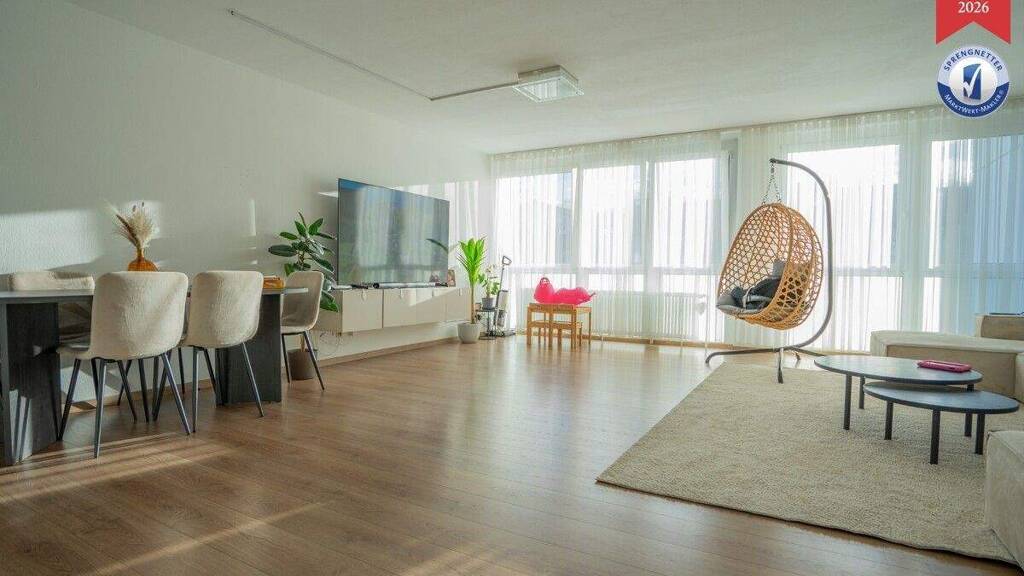 Diese großzügige 4-Zimmer-Wohnung mit ca. 102 m² Wohnfläche befindet sich im 1. Obergeschoss eines gepflegten 6-Parteien-Mehrfamilienhauses aus dem Jahr 1972. Das Gebäude verfügt über einen Personenaufzug und wird zuverlässig durch eine Hausverwaltung sowie einen Hausmeisterservice betreut. Die Wohnung überzeugt durch einen durchdachten Grundriss und eine familienfreundliche Raumaufteilung. Neben dem Hauptschlafzimmer stehen zwei weitere Zimmer zur Verfügung, die sich ideal als Kinder-, Arbeits- oder Gästezimmer eignen. Das helle Wohnzimmer bietet ausreichend Platz für Wohnen und Essen. Die Küche ist separat und geschlossen ausgeführt. Ein besonderes Highlight ist der großzügige Süd-Ost-Balkon, der sowohl vom Hauptschlafzimmer als auch von einem Kinderzimmer aus begehbar ist und angenehme Sonnenstunden garantiert. Das Badezimmer verfügt über ein Fenster sowie eine kombinierte Badewanne mit Dusche. Zudem besteht die Möglichkeit, die Waschmaschine direkt im Badezimmer anzuschließen. Ergänzt wird das Raumangebot durch ein separates WC. Ein privates Kellerabteil bietet zusätzlichen Stauraum. Die Wohnung wurde im Jahr 2016 vollumfänglich modernisiert. Ausgestattet ist sie mit hochwertigem Vinylboden sowie zweifach verglasten Kunststofffenstern. Beheizt wird das Gebäude über eine Gas-Zentralheizung mit Radiatoren (Wärmeerzeuger Baujahr 1993). Ein Energieverbrauchsausweis liegt vor, Energieeffizienzklasse E, gültig bis 2029. Die Wohnung ist aktuell vermietet und erzielt eine monatliche Kaltmiete von 850 € zzgl. 300 € Nebenkosten. Das monatliche Hausgeld beträgt derzeit 431 €. Rücklagen wurden ordnungsgemäß gebildet. Ein Stellplatz im Freien sowie Breitbandinternet runden dieses attraktive Angebot ab.