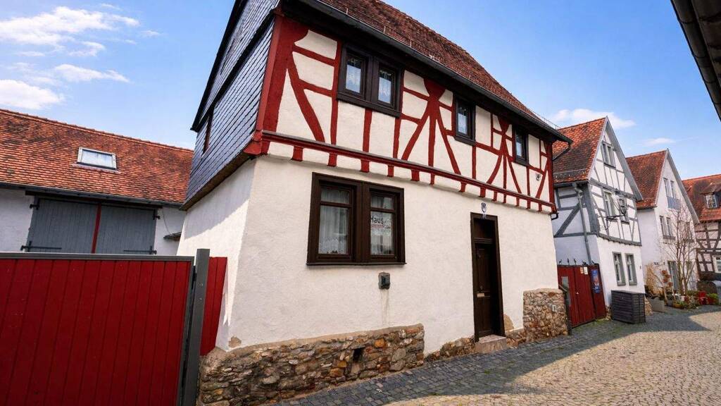 Hier haben Sie die seltene Gelegenheit eines von wenigen historischen Fachwerkhäusern in der Altstadt von Oberursel direkt an der St.-Ursula-Kirche zu erwerben. Das Fachwerkhaus ist ein Baudenkmal aus der Zeit um 1700. Auf ca. 120m² bietet Ihnen das charmante Anwesen 4 Zimmer sowie eine Wohnküche und zwei Badezimmer. Im ausbaufähigen Dachgeschoss steht Ihnen weitere, frei nutzbare Fläche zur Verfügung. Es handelt sich um ein zweigeschossiges Wohnhaus in Traufenstellung mit steilem Satteldach und traufseitigen Geschossüberständen. Das Fachwerk im Obergeschoss wurde freigelegt und zeigt Bund- und Eckpfosten mit aussteifenden Mannfiguren sowie Einer- und Doppelfenster in ursprünglicher Form. Das Gebäude liegt in der Altstadt von Oberursel im Hochtaunuskreis, Hessen, und ist in der Liste der Kulturdenkmäler der Stadt aufgeführt (Objekt-Nr. 99750). Es wurde als Wohnhaus klassifiziert und steht unter Denkmalschutz des Landesamts für Denkmalpflege Hessen.
