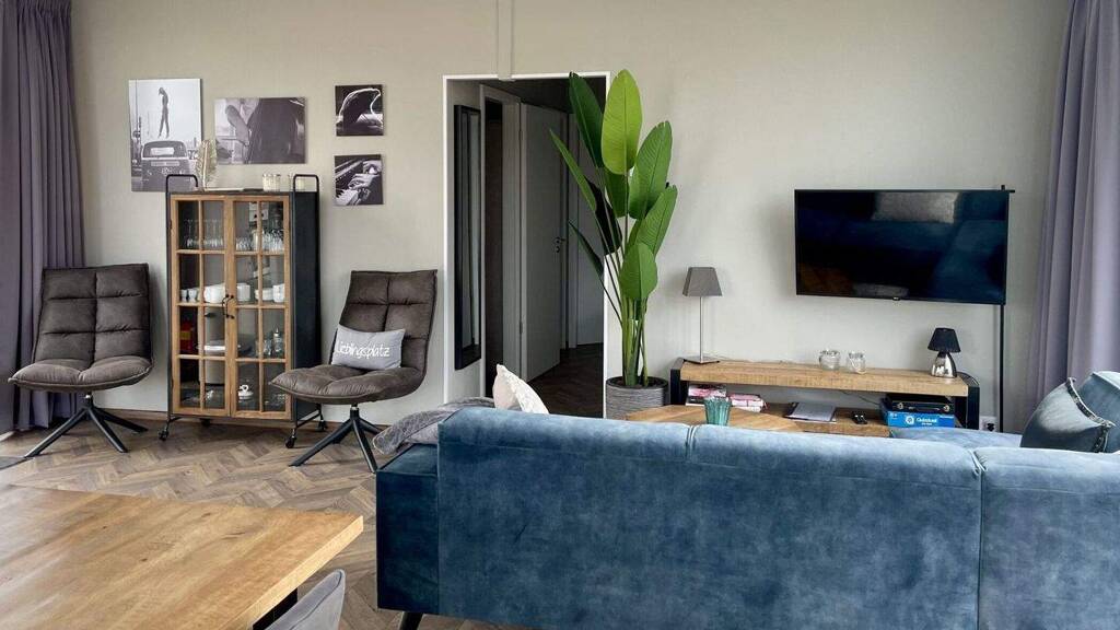 Wohnen, kochen, essen...ein großer Wohn-/ Essbereich mit lichtdurchfluteten großen Fenstern und direktem Blick aufs Wasser machen ein perfektes Wohngefühl. Eine große Eckcouch und 2 Sesseln und einem Smart TV laden zum Fernsehabend ein. Hohe Zimmerdecken geben ein großzügiges Gefühl, eingebaute und dimmbare Deckenleuchten sorgen für ein angenehmes Licht.