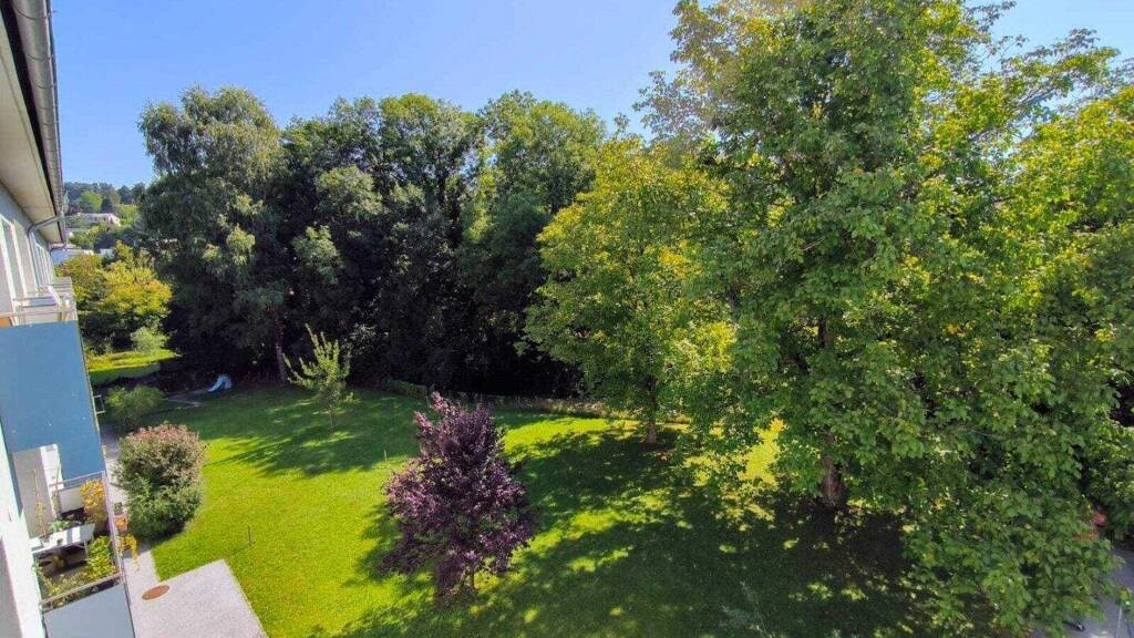 Das helle Wohnzimmer (23,55 m²) öffnet sich zum sonnigen Balkon mit herrlichem Grünblick - perfekt für entspannte Stunden an der frischen Luft. Der gepflegte Allgemeingarten mit Obstbäumen rundet das Angebot ab und lädt zusätzlich zum Verweilen ein. Hier können Sie Ihre Ideen verwirklichen und das volle Potenzial dieser Wohnung ausschöpfen.