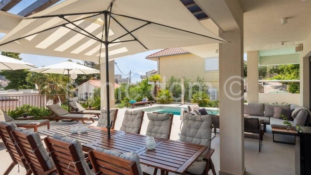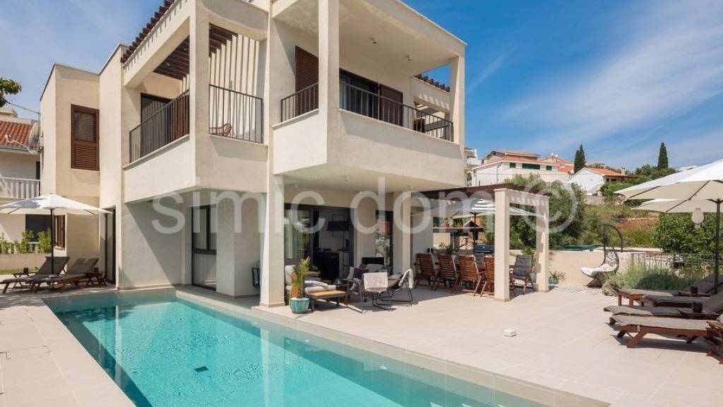Wir vermitteln den Verkauf einer wirklich schönen Villa in einer der beliebtesten Lagen auf der Insel Ciovo. Diese neu erbaute Villa befindet sich nur 50 m vom Meer entfernt und bietet sehr schöne Ausblicke auf das Meer und die Umgebung. Die Grundstücksfläche beträgt 501 m2, während die Bruttofläche der Villa 290 m2 beträgt. Es besteht aus einem Untergeschoss, einem Erdgeschoss und dem ersten Stock. Im Untergeschoss befindet sich eine sehr geräumige Garage, ein Aufenthaltsbereich, ein Maschinenraum und ein Schlafzimmer mit Bad und kleiner Loggia. Im Erdgeschoss befindet sich eine modern gestaltete und luxuriös ausgestattete Küche mit schönem Ess- und Wohnbereich. Die erste Etage hingegen bietet drei Schlafzimmer mit eigenem Bad und Balkon mit Meerblick. Ein besonderer Vorteil dieser Immobilie ist ein sehr weitläufiger Garten, der einen großen Swimmingpool mit Sonnendeck und einen sorgfältig gepflegten Garten umfasst. Die Villa wurde ausschließlich mit den hochwertigsten Materialien gebaut und ihre Innenarchitektur ist eine gekonnte Mischung aus Luxus und Funktionalität. Auf dem Dach gibt es vorbereitete Installationen (Strom, Wasser) für den schnellen Aufbau der Dachterrasse. Die ruhige Lage in Meeresnähe garantiert ein einzigartiges Urlaubserlebnis und alle Ausstattungsmerkmale dieser modernen und exklusiven Villa sind ein zusätzlicher Garant für den hohen Wert dieser Investition. Besitz ordentlich. Die Standardgeschäftspolitik unserer Immobilienagentur besteht darin, eine Besichtigung der Immobilie zu organisieren, nachdem der Kunde unseren Standardagenturvertrag unterzeichnet hat. Die Unterzeichnung dieser Vereinbarung ist eine Grundvoraussetzung für weitere Aktivitäten im Zusammenhang mit dem Immobilienkauf, die auf dem Immobilienmaklergesetz und dem Datenschutzgesetz beruhen.