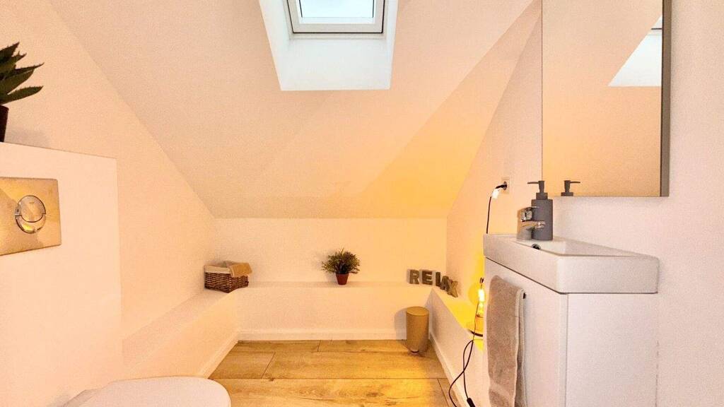 Das Dachgeschoss bietet weitere, vielseitig nutzbare Flächen. Über den Flur, der für eine gute Erschließung der Räume sorgt, gelangt man zunächst zu einem auf dieser Etage befindlichen WC sowie anschließend in eine großzügige, offen gestaltete Fläche. Diese eignet sich durch ihre Größe und die angenehme Abgeschiedenheit besonders gut als Schlafzimmer, kann jedoch ebenso flexibel als Studio, Spielbereich oder zusätzlicher Wohnraum genutzt werden.