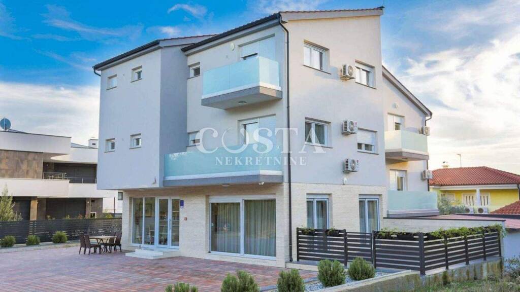 In Biograd na Moru steht eine Apartmentvilla in exzellenter Lage, nur 300 m vom Meer entfernt, zum Verkauf. Das 400 m² große Gebäude befindet sich auf einem 641 m² großen Grundstück und besteht aus Erdgeschoss und zwei Obergeschossen. Im Erdgeschoss befinden sich Rezeption, Waschküche und Abstellraum, während die beiden Obergeschosse elf Studio-Apartments mit jeweils eigener Terrasse beherbergen. Alle Apartments sind klimatisiert und möbliert. Private Parkplätze stehen im großzügigen Innenhof zur Verfügung.