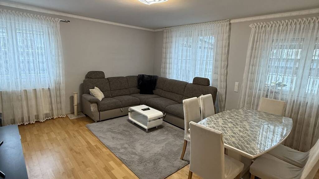 Die Wohnung befindet sich im Erdgeschoss und verfügt zusätzlich über großzügige Nutzflächen im Kellergeschoss, die vielseitig genutzt werden können (z. B. Lager, Hobbyraum oder Arbeitsbereich).