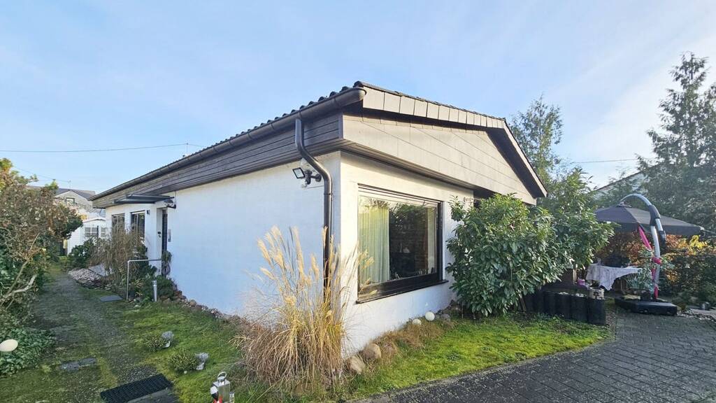Dieser attraktive Bungalow aus dem Jahr 1975 liegt auf einem ca. 409 m² großen Grundstück und bietet ca. 104 m² Wohnfläche. Das teilunterkellerte Haus ist barrierefrei und rollstuhlgerecht - ideal für alle, die komfortables, altersgerechtes Wohnen suchen. Durch die ebenerdige Gestaltung eignet es sich auch hervorragend für Familien, einschließlich Familien mit Kindern mit besonderen Bedürfnissen. Vom Eingangsbereich aus erreichen Sie den offenen Wohn- und Essbereich, der viel Platz für geselliges Beisammensein bietet. Ein Kamin sorgt für eine gemütliche Atmosphäre. Über den Essbereich haben Sie direkten Zugang zur Terrasse und zum Garten, der zum Entspannen im Freien einlädt. Die Küche ist ebenfalls vom Essbereich aus erreichbar und ermöglicht zusätzlich den Zugang zum Keller. Rechter Hand des Eingangs führt ein Flur zu drei weiteren Zimmern sowie einem Badezimmer mit ebenerdiger Dusche, das den barrierefreien Standard unterstreicht. Im Garten befindet sich ein praktisches Gartenhaus, ideal zur Aufbewahrung von Gartengeräten oder Ähnlichem. Die Außenanlage hat ausreichend Platz für Freizeit und Erholung im Grünen. Technische Daten: - Keller: Teilunterkellert, mit Hebeanlage für die Waschmaschine (Kellerniveau unter Kanalniveau) - Heizung: Nachtspeicherheizungen, alle zwischen 2005-2018 erneuert - Fenster: Doppelverglasung, Holz, Baujahr 1975 - Dach: erneuert 1985, gedämmt - Rollläden: erneuert zwischen 2017-2020, elektrisch - Gegensprechanlage: neu 2025 - Leitungen: Strom- und Wasserleitungen aus Baujahr - Anschlüsse: Glasfaser und Fernwärme liegen in der Straße - Barrierefreiheit: rollstuhlgerecht Renovierungen / Modernisierungen: - 2023: Einfahrtstor und Tür neu (Edelstahl) - 2025: Gegensprechanlage neu, Kellerschachtabdeckung neu - 2018: Badumbau mit barrierefreier Dusche - ca. 2005: Keller und Außentreppe neu gefliest - 2019: Warmwasserspeicher neu - 1985: Dach erneuert Nutzen Sie dieses Angebot von ebenerdigen und barrierefreie Wohnen!