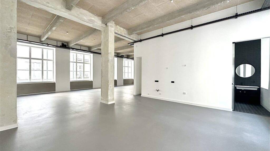 Die Fläche besteht aus einem Großraumbüro sowie Anschlüsse für eine Teeküche und eine Toilette samt moderner Walk-In Dusche.