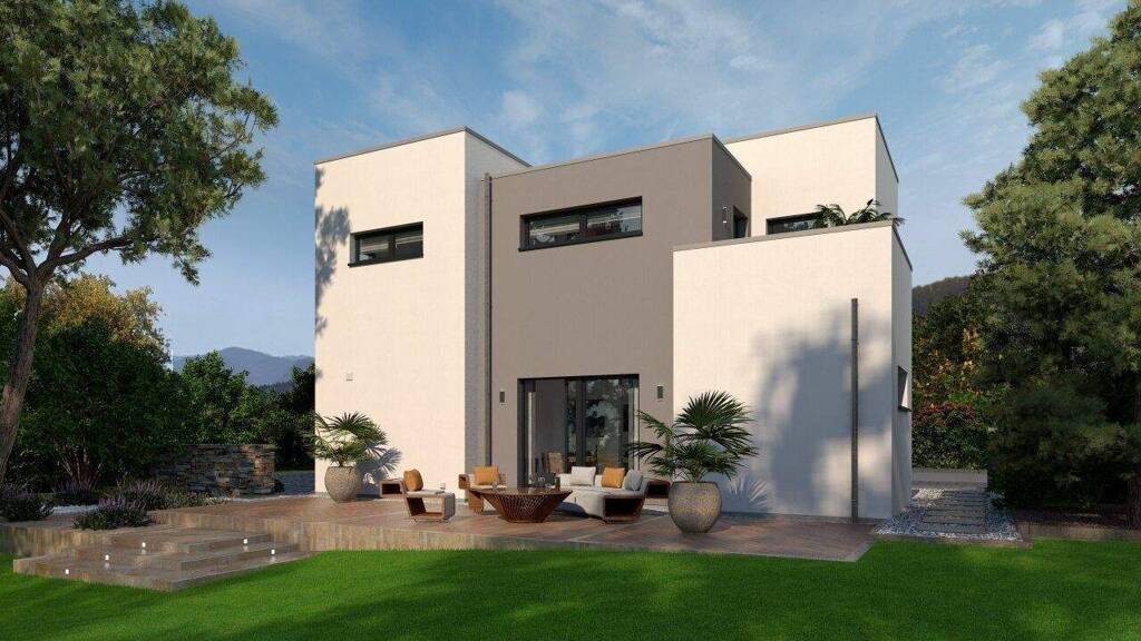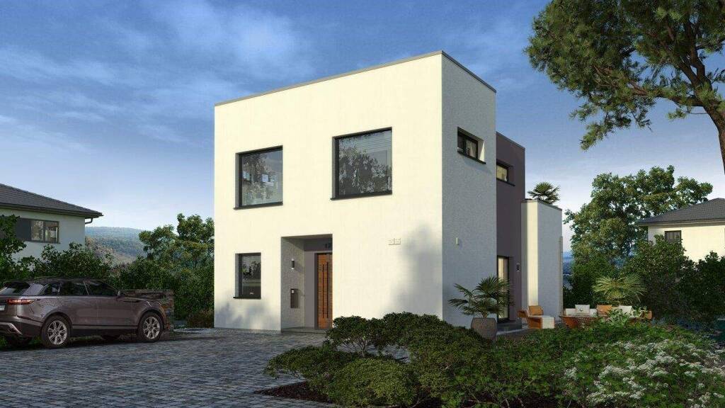 Ein echter Blickfang ist unser Black Label 9, bei dem vier rechteckige, unterschiedlich hohe Bauteile harmonisch zu einem Ganzen verschmelzen. Diese besondere Architektur verleiht der Fassade nicht nur ein außergewöhnliches Aussehen, sondern sorgt auch im Innern des mehr als 145 m² großen Einfamilienhauses für zahlreiche wohnliche und optische Highlights. Durch den überdachten Eingangsbereich führt der Weg geradeaus in den hellen und offen gehaltenen Wohn-Ess-Koch-Bereich, bei dem Versätze für eine besondere Wohlfühlatmosphäre sorgen. Im vorderen Teil, abgetrennt durch die Treppe ins Obergeschoss, befinden sich Hauswirtschaftsraum, Garderobe und Gäste-WC. Highlight der ersten Etage: der fast 10 m² große Balkon, der sowohl vom Tageslichtbad als auch vom Elternschlafzimmer aus zugänglich ist. Komplettiert wird das Raumangebot durch zwei Kinderzimmer, die beide über ein großes Sitzfenster und damit einen absoluten Lieblingsplatz verfügen.