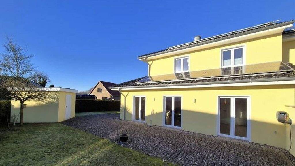 Energieefiziente Doppelhaushälfte (Bj. 2009) in Ständerfachwerk-Bauweise mit WDVS-Außenwänden und Dreifach-Verglasung, die durch eine durchdachte Architektur besticht. Das Haus liegt in einem durch Einfamilienhausbebauung geprägten, abgeschlossenen Neubaugebiet in Boostedt.
