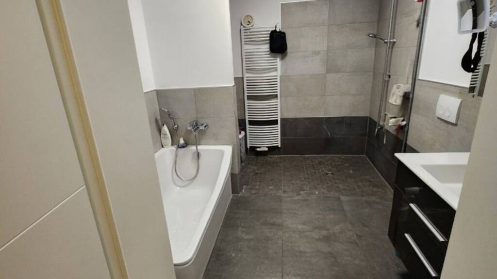 Das hochwertig ausgestattete Badezimmer lässt keine Wünsche offen: Eine ebenerdige Dusche sowie eine separate Badewanne sorgen für entspannte Wellnessmomente im eigenen Zuhause.