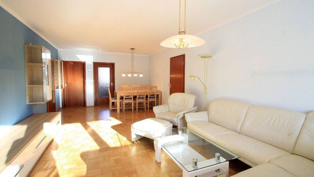 Die gepflegte 4-Zimmerwohnung befindet sich im 1. Obergeschoss eines ansprechenden Mehrfamilienhauses und überzeugt durch ihre helle, freundliche Atmosphäre sowie eine durchdachte Raumaufteilung. Mittelpunkt der Wohnung ist das großzügige Wohn- und Esszimmer mit viel Tageslicht, das ausreichend Platz bietet. Neben dem Schlafzimmer stehen ein Kinderzimmer sowie ein weiteres Zimmer zur Verfügung, das flexibel als Arbeits- oder zusätzliches Kinderzimmer genutzt werden kann.