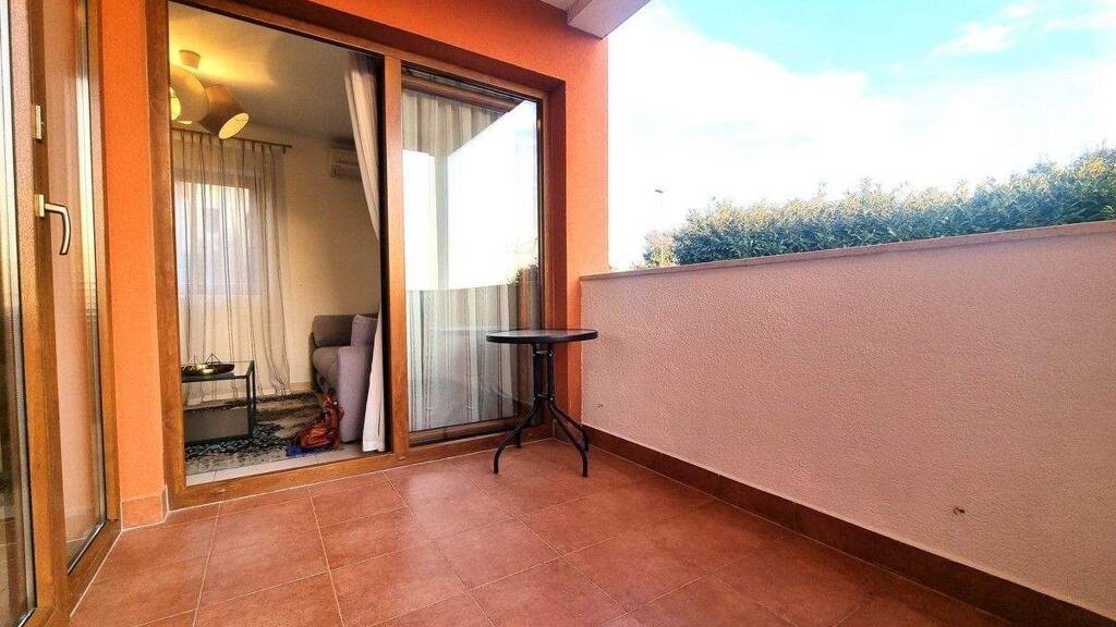 Eine komfortable Wohnung von 42,70 m² befindet sich im Erdgeschoss eines Gebäudes in bester Lage nahe dem Zentrum von Novigrad (1 km) und gepflegten Stränden (ca. 900 m). Das Gebäude wurde 2009 erbaut. Die Wohnung ist voll möbliert.