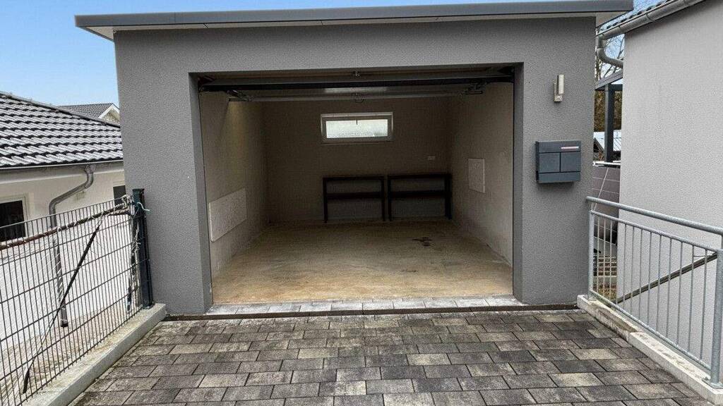 Weitere Vorteile dieser Wohnung sind ein eigener Eingang, der zusätzliche Unabhängigkeit schafft, sowie ein großer, eigener Kellerraum, der vielseitige Nutzungsmöglichkeiten bietet. Für Ihre Fahrzeuge stehen eine Garage sowie ein zusätzlicher Stellplatz zur Verfügung.