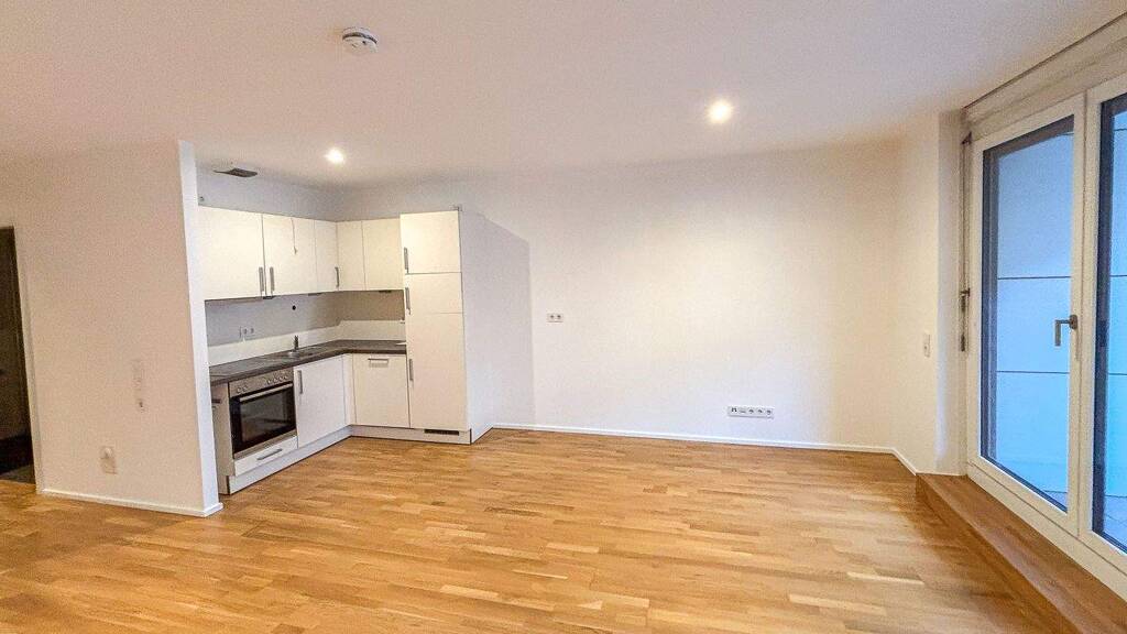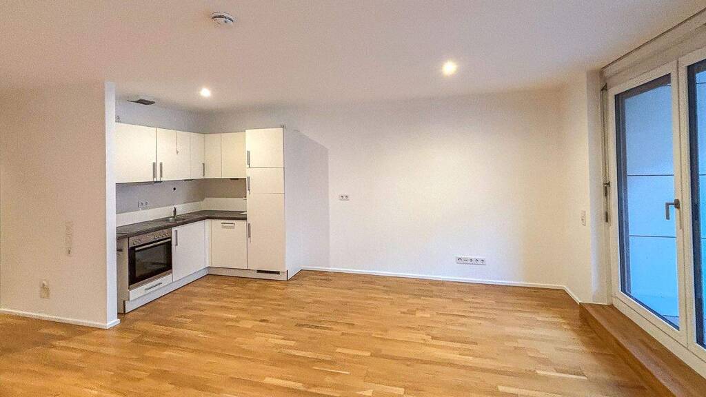 Toll geschnitten lädt das große Wohnzimmer mit integriertem Kochbereich und Loggia zum Relaxen ein. Ein schickes Badezimmer mit Dusche und Waschmaschinenanschluss komplettiert das 1-Zimmer-Apartment. Auch für einen Abstellraum ist gesorgt.