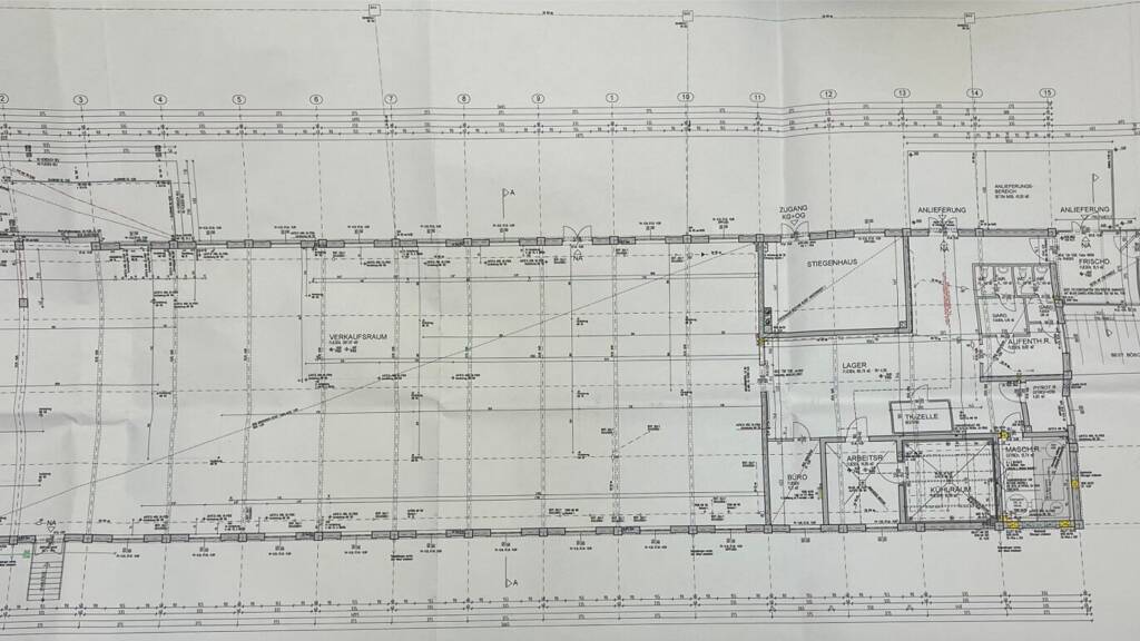 Knapp ca. 600 m² Verkaufsfläche mit einer für den Lebensmittelhandel optimalen Aufteilung machen dieses Geschäftslokal für ähnliche Branchen besonders attraktiv.
