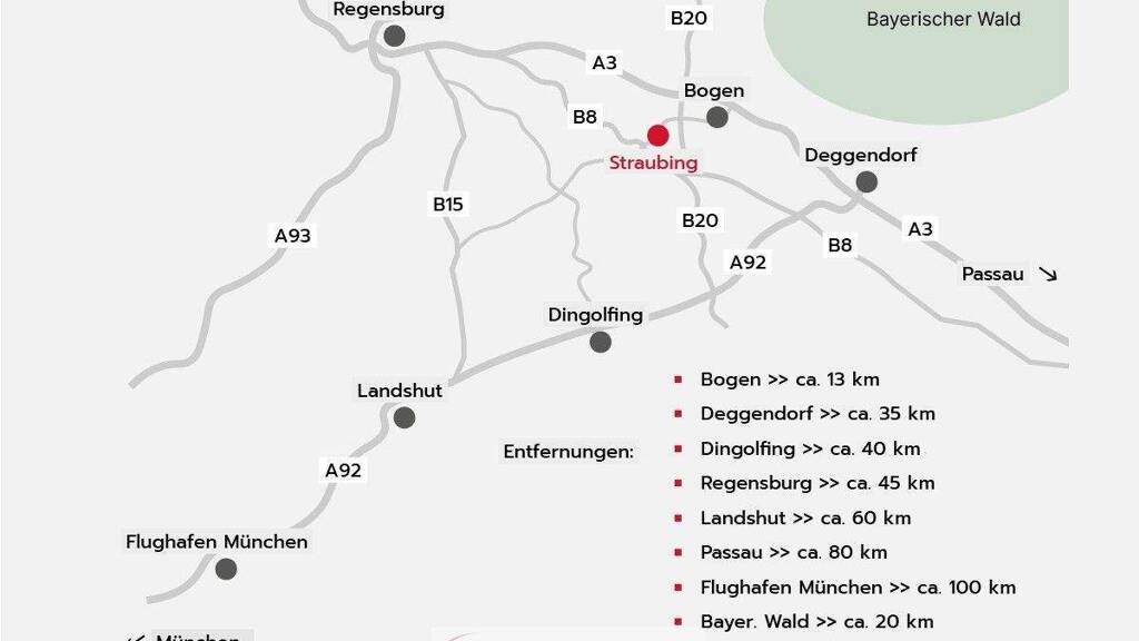 1A-Lage Willkommen in "Timber Town Straubing" - einem neu entwickelten Wohnquartier im Osten Straubings, das ruhiges Wohnen mit bester Infrastruktur verbindet. Die Otto-Schott-Straße liegt in einer grünen, verkehrsberuhigten Zone, ideal für Familien und alle, die ein entspanntes Umfeld schätzen. Kindergarten, Grundschule, Supermarkt und Bushaltestelle befinden sich nur wenige Schritte entfernt. Auch das Erlebnisbad AQUAtherm, das Klinikum sowie der Tiergarten sind bequem erreichbar. Zwei Terrassen, viel Platz im Garten und Spazierwege direkt vor der Haustür machen das Leben hier rundum angenehm.