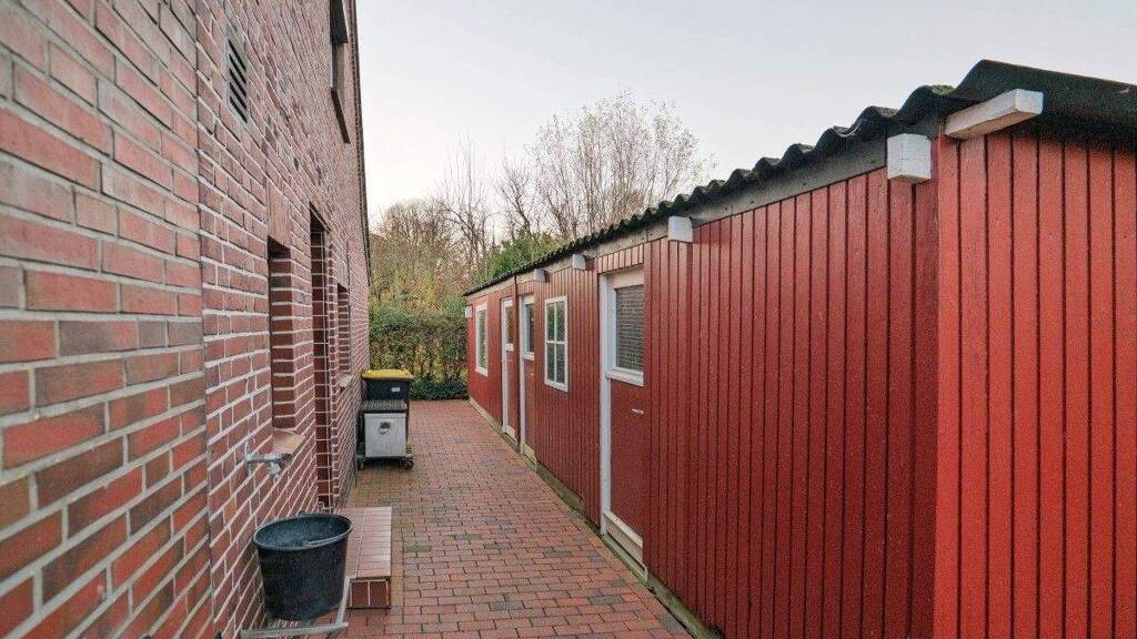 Viel Platz für die ganze Familie: Auf insgesamt 6 bis 7 Zimmern, 2 Küchen und 2 Bädern finden Sie hier eine sehr gepflegte und gemütliche Immobilie vor. Zusätzlichen Stauraum bietet der Teilkeller sowie eine in 3 Räume unterteilte Schuppenanlage im Garten. Ein Doppelcarport mit kleiner Werkstatt befindet sich an der Straße, welche als Sackgasse endet. Eine überdachte Terrasse befindet sich auf der Ostseite des ca. 800 m² großen Grundstückes. Hier gibt es ausreichend Platz zum Grillen und Zusammensitzen mit Familie und Freunden.Ein Hühnerstall im Norden an der Grundstücksgrenze beherbergt eine Zwerghühner-Familie, die gerne bleiben wollen würden.