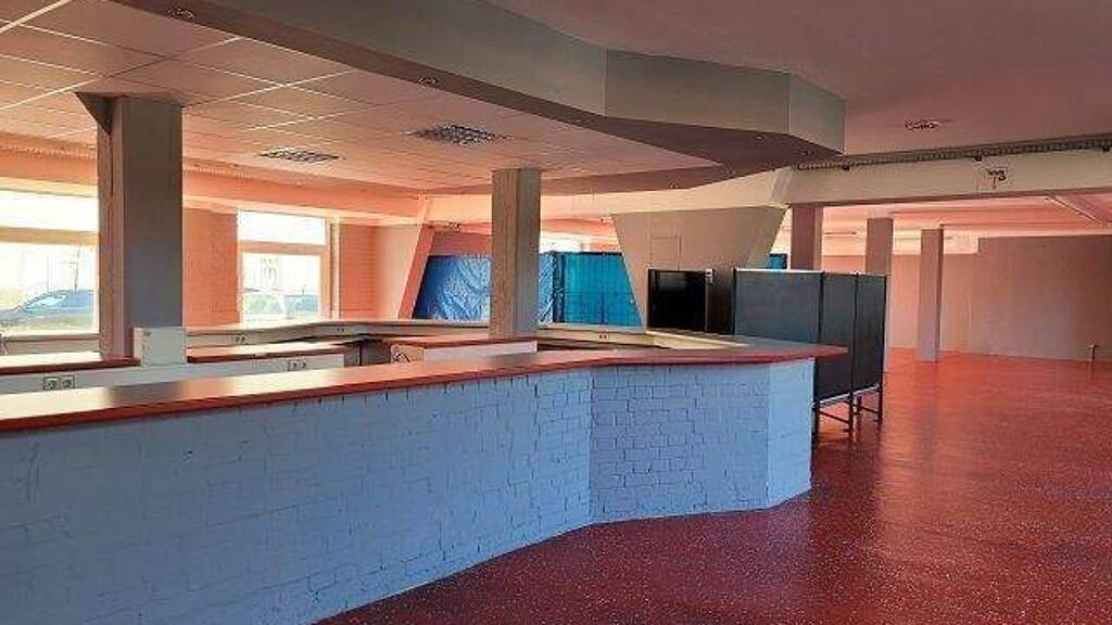 Eine Cafeterria ist leer und steht hier auch zur langfristigen Vermietung bereit.
