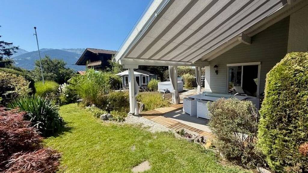 Ankommen, durchatmen, an nichts denken müssen: Hinter der diskreten Zufahrt öffnen sich Garage und Doppelcarport - und schon beim Aussteigen spüren Sie die Ruhe dieses Ortes. Der Blick schweift über das eigene Grün, weiter über weite Wiesen bis hinauf zu den Gipfeln. Südwestlage, Licht bis in den Abend, Sonnenuntergänge wie gemalt.
