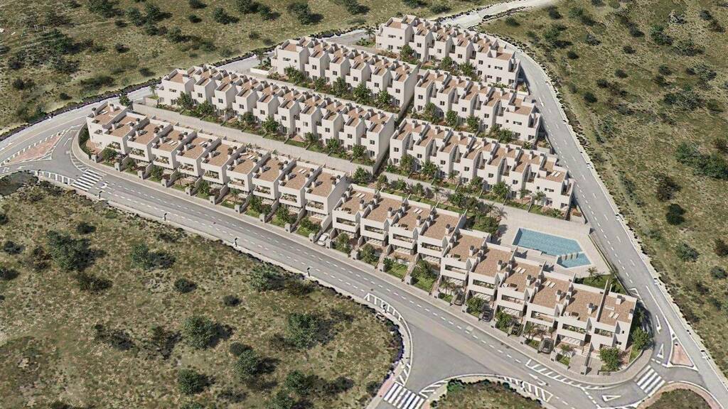 In Monforte del Cid entsteht eine exklusive Neubausiedlung mit 54 Reihenhäusern und Doppelhaushälften in einer privaten Urbanisation nahe des Golfplatzes Alenda. Jede Immobilie bietet 163 m² Wohnfläche auf einem 180 m² großen Grundstück mit 3 Schlafzimmern, 2 Badezimmern, 1 Toilette und einer nutzbaren Baufläche von 130 m².