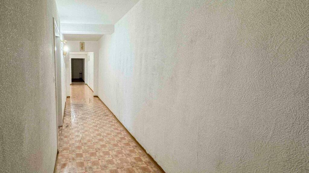 Der Grundriss ist klar strukturiert: Ein langer Eingangsflur verbindet alle Räume miteinander. Von hier aus gelangt man in die geräumige Wohnküche, zwei gut geschnittene Schlafzimmer sowie ein großes Badezimmer. Durch die Wohnungsgröße und die praktische Aufteilung eignet sich das Objekt sowohl für Paare als auch für kleine Familien oder Mieter, die Home-Office-Flächen benötigen.