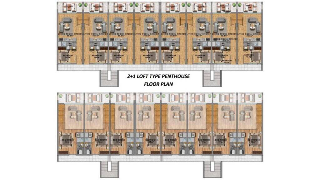 Quadratmeterangaben in brutto (vgl. England/USA), für die in Deutschland übliche Angabe (exkl. Balkon und Terrasse) sollten etwa 15 % abgezogen werden.
